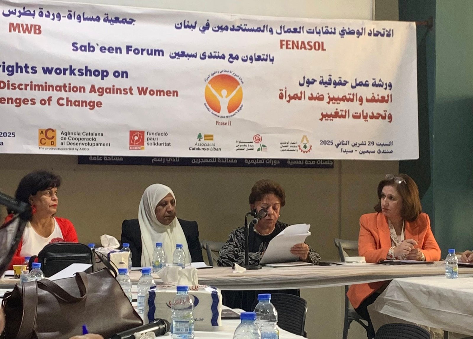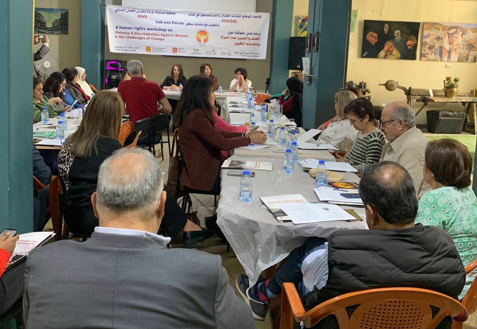 نظَّم الاتحادُ الوطنيُّ لنقاباتِ العمالِ والمستخدمين في لبنان وجمعيةُ مساواة – وردة بطرس للعمل النسائي، بالتعاون مع منتدى سبعين في مدينةِ صيدا، ورشةَ عملٍ تفاعلية ضمن مشروع عدالة النوع الاجتماعي وحقوق المرأة، وذلك في إطار نشاطات حملة مناهضة العنف ضد المرأة.